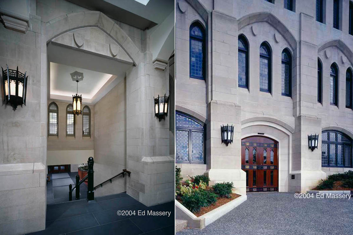This project involved strategically locating the elevator in a position to access six of the nine levels of the parish house, construction of ramps to access the refectory and Lady Chapel, use of a rock-splitter to break down three foot thick foundations which had to then be manually removed from several different levels within the parish house, instituting shoring and underpinning operations to support major architectural features of the parish house such as the tower which was once the original parish house entrance, relocating mechanical equipment and placing a new slab on deck in the old coal room to create more space for their day-care and Christian education while creating much needed crawl space for storage, replicating hand carved doors, wrought iron light sconces, and cast steel newel posts and embellishments, and careful removal, restoration, and re-installation of hand made clay tile at the entrance of the Lady Chapel.