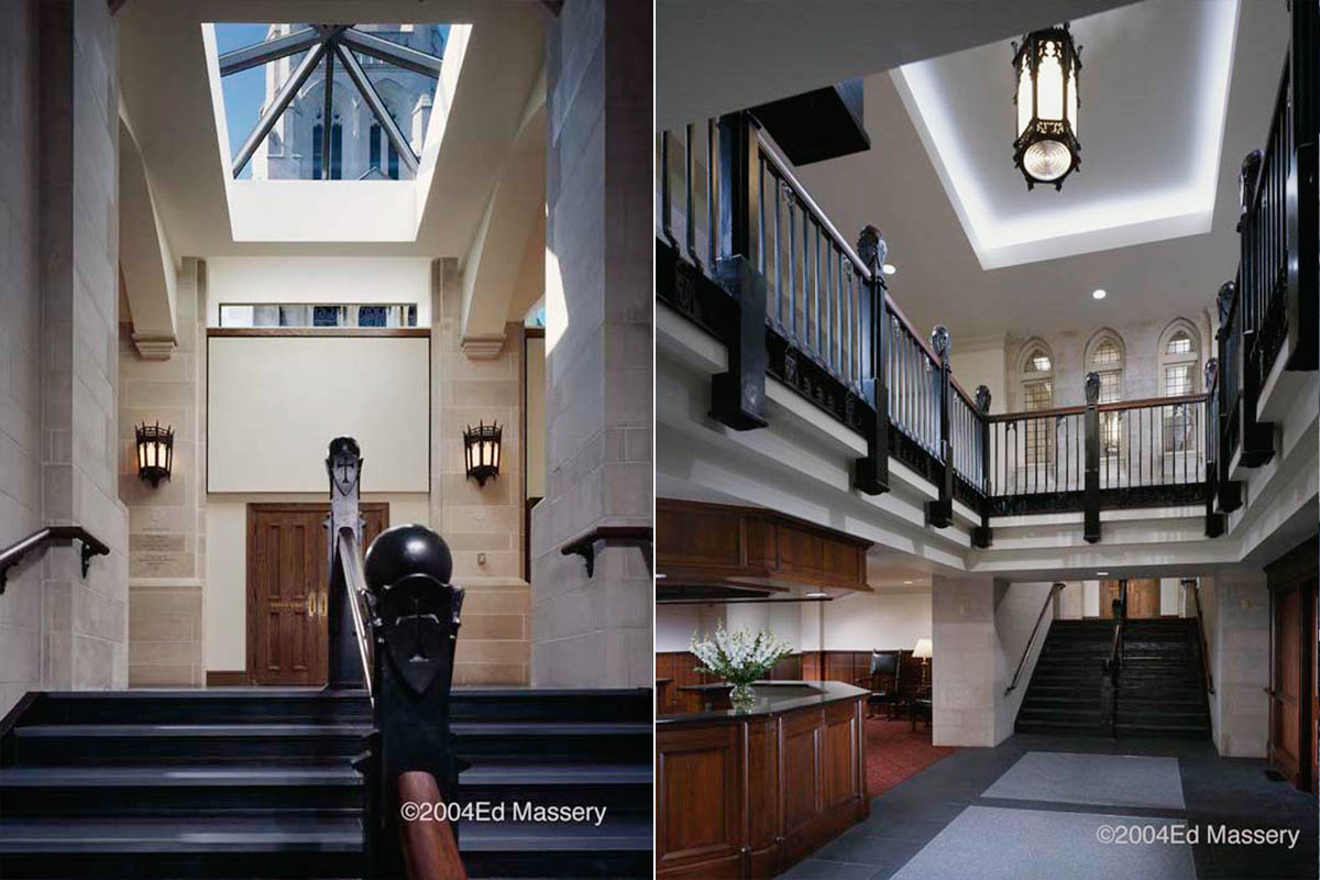 A project that was several years in the planning phase, the Parish House Renovation at Calvary Episcopal Church was a challenging and intriguing project for the project team. Three Junior Wardens, three Architects, and at least as many plans as the two combined led to a project that successfully resolved the three major issues relating to their mission: make the parish house more inviting, make the parish house 100% ADA Accessible, and to recapture and more efficiently use the vast amount of space within the parish house itself. As if developing solutions to these problems was not difficult enough, there were rules placed upon the project team: when complete, the project must look as though it had been there since the original construction of the parish house, the project must use the same architectural vocabulary as defined by Cram, Goodhue & Ferguson when the original building was constructed in 1906, only the best quality materials and craftsmanship would be acceptable, the church and parish house must continue its daily operations with minimal disturbance, and the project must fit within a fixed budget. The project team accepted this challenge, and with innovation, communication, and old-world craftsmanship achieved all of these goals.